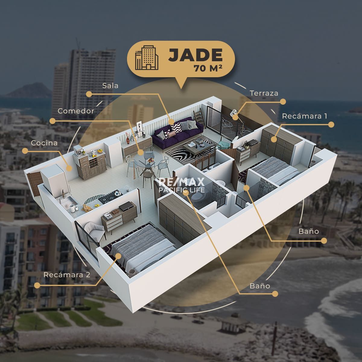 Descubre este departamento completamente amueblado ubicado en Ferrara Pacific City, dentro de la Marina Mazatlán, la zona más exclusiva de la ciudad. Ideal para quienes buscan confort, estilo y una ubicación privilegiada.