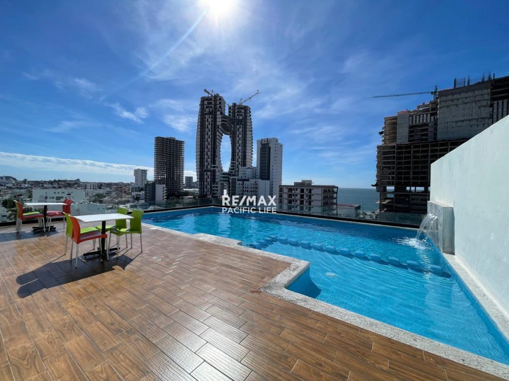 Alberca Infiniti climatizada, dos jacuzzi, sala de masaje, sala de vapor, salón de eventos, elevador, seguridad las 24 horas. 1 Estacionamiento.