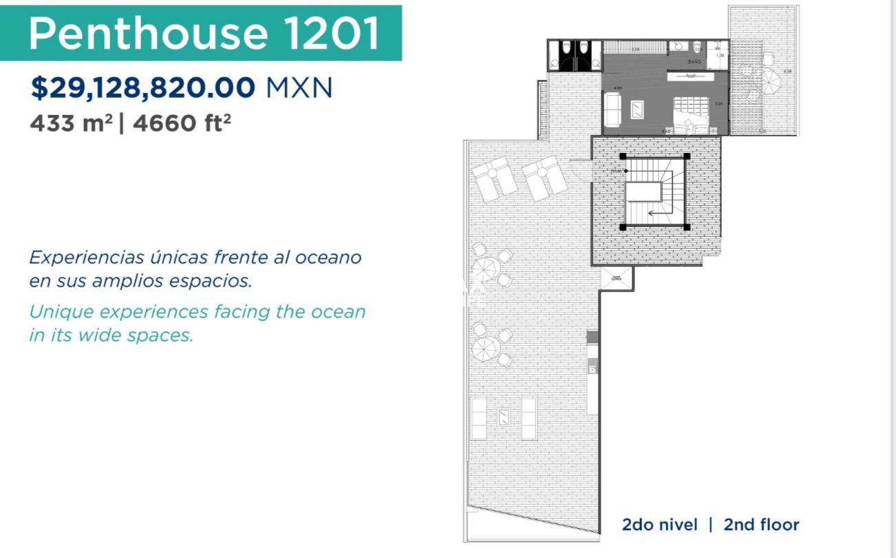 Este Penthouse en Punta Bahía te permite diseñar cada espacio a tu gusto, eligiendo los acabados de lujo que reflejen tu estilo personal. Disfruta de espacios amplios, luminosos y abiertos, creados para aprovechar al máximo las vistas al mar desde todos los rincones.